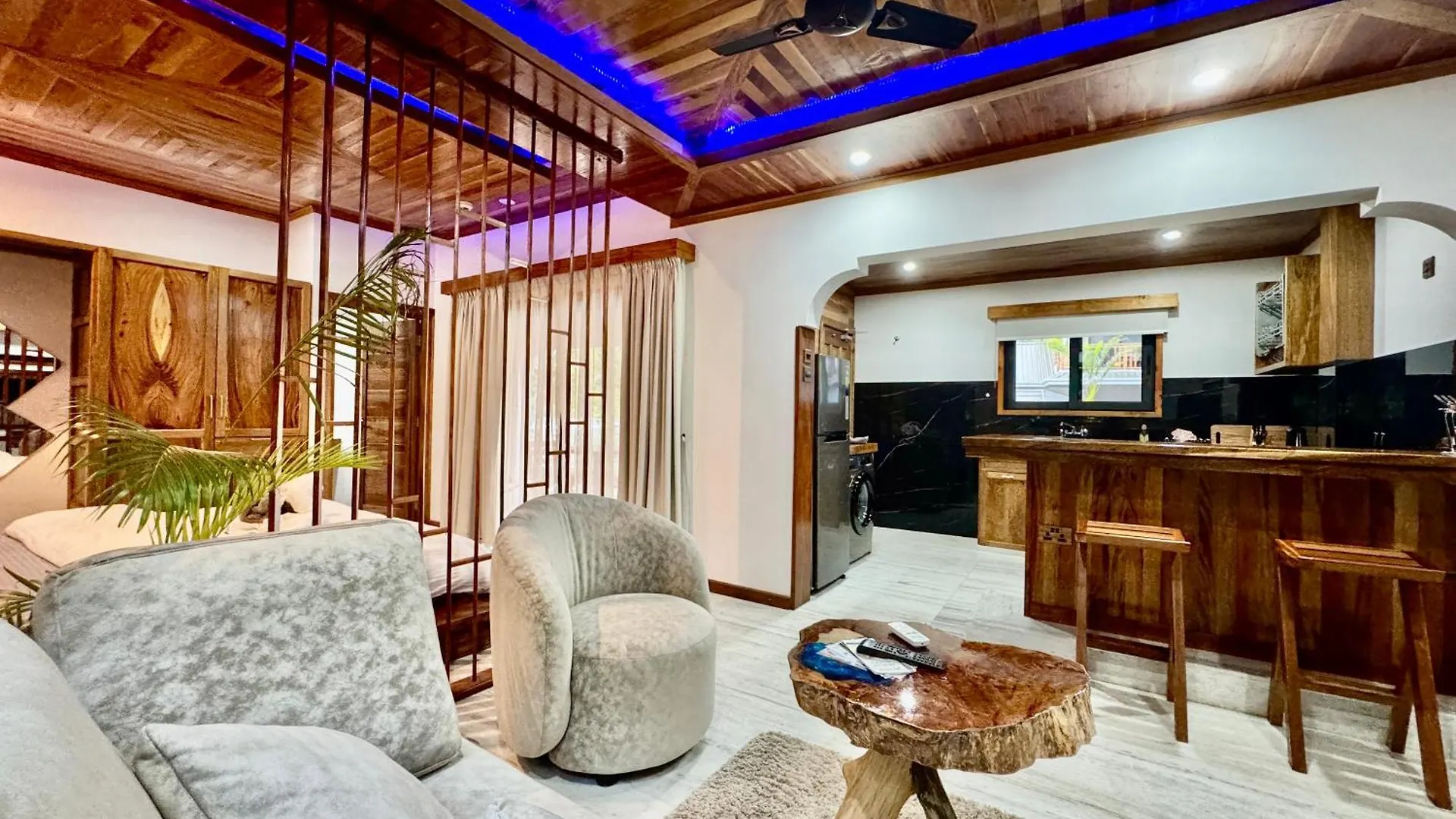 The accommodation comes with the views of the mountain. Bathroom facilities at Alibel Beach Villa also include a walk-in shower and a separate toilet. Hairdryers, bath sheets, and towels also ensure a comfortable experience.